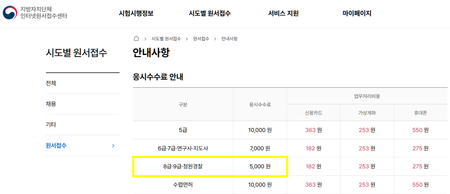 √ 응시수수료 : 8,9급 5,000원 (** 자세한 사항은 각 지방자치단체 별 공고문을 통해 확인 가능!!)
