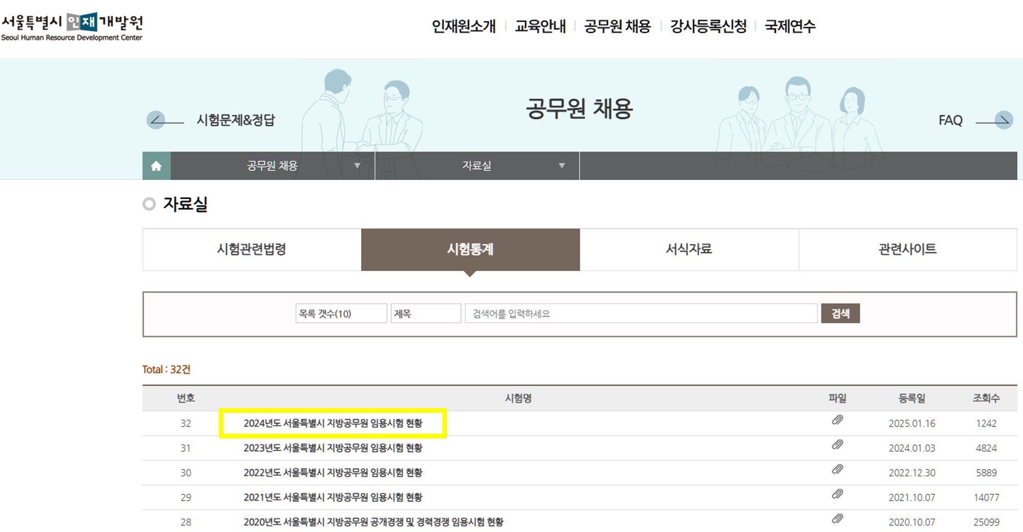 지방자치단체 인터넷원서 접수센터 - 시험공고 리스트