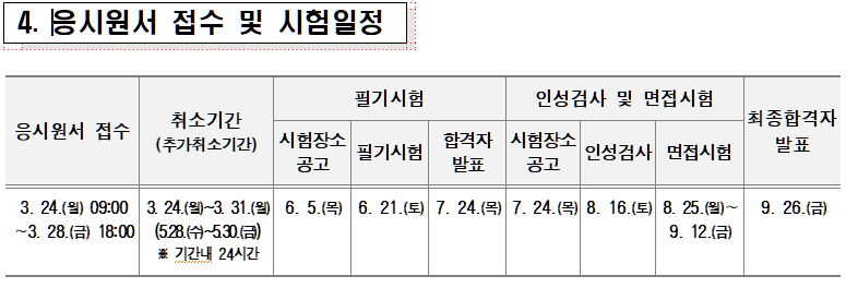 ※ 응시원서 접수 : 3/24(월))~ 3/28(금) 09:00~18:00